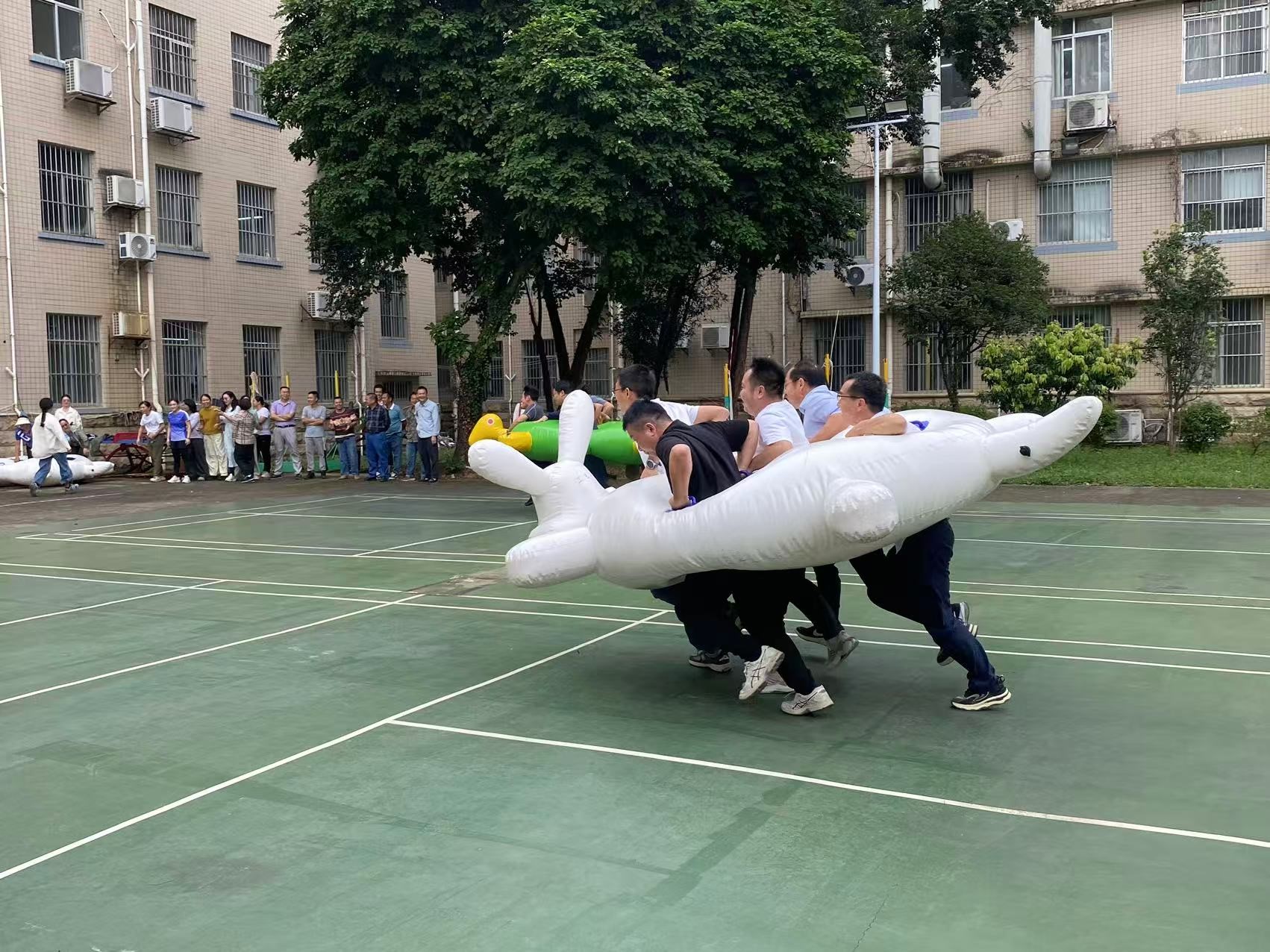 为丰富公司教职工业余生活,选拔教职工校运会选手,增强公司工会凝聚力,2025年10月21日,公司分工会组织教职工在公司气排球场开展趣味团建活动。教职工参与热情高涨,大家暂时放下手头的工作,纷纷踊跃加入到趣味运动会的队伍中。在龟兔接力跑项目中,平日里严谨认真的老师们瞬间切换状态,手持接力棒的选手眼神专注,起跑时脚步轻快有力,即便偶尔出现交接棒的小插曲,也立刻笑着调整节奏,身旁队友们的加油呐喊声此起彼伏。单人跳绳的老师身姿灵活,绳子在脚下 “呼呼” 作响,计数声与欢呼声交织在一起。本次团建活动不仅促进了教职工间的交流,也为即将在11月初举行的校运会选拔出了更多的体育健将。
