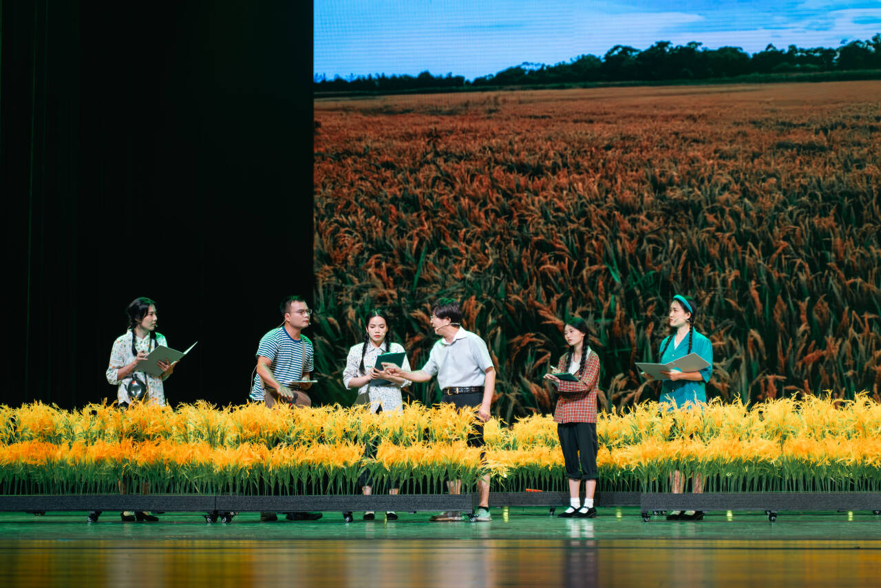 《禾下乘凉梦》结合公司专业特色,以表演为媒穿越古今,通过日常的点滴小事展现农业先驱的风采。剧本围绕“禾下乘凉”的梦想展开,从宋应星让天下人衣食富足,到袁隆平的让人们不会再挨饿,从《天工开物》的农业智慧,到现代科学技术的杂交水稻奇迹,从科研育人到科学引领,让观众得以窥见农业科学家对天下人的责任担当与对国家的卓越贡献,也是新一代农院人为实现“禾下乘凉梦”的强农目标接续奋斗、笃行不怠的铿锵誓言。