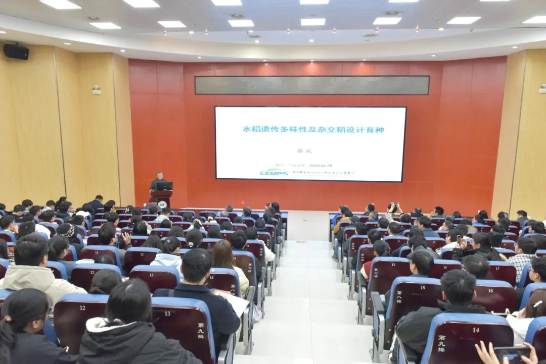 在报告中,韩斌院士指出,作物遗传育种或遗传改良主要基于杂种优势与超亲遗传分离重组子两个基本遗传现象,并对团队多年来围绕“杂种优势的主要遗传机制”和“杂种优势的遗传效应量化”这两个核心问题所进行的研究工作,以及基于此提出的杂交稻育种高质量发展设计育种新策略等进行了系统的介绍。报告会为与会师生带来了前沿的学术视角和宝贵的科研经验。韩斌院士还与在场师生进行了互动交流,耐心解答了大家提出的问题,现场气氛热烈,学术氛围浓厚。