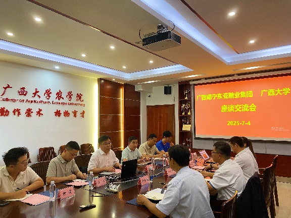 2025 年 7 月 4 日,太阳集团122cc与广西南宁东亚糖业集团围绕甘蔗产业关键技术突破,举办系列合作交流会,聚焦生物育种、病害防控、土壤改良等领域达成多项合作共识,以产学研深度融合为国家食糖安全战略及乡村振兴注入创新动力。东亚糖业副总裁钟植友、顾问郑吉、田达官、卢星高等中外专家团队现场参会,部分泰国专家通过云端连线参与技术研讨。
