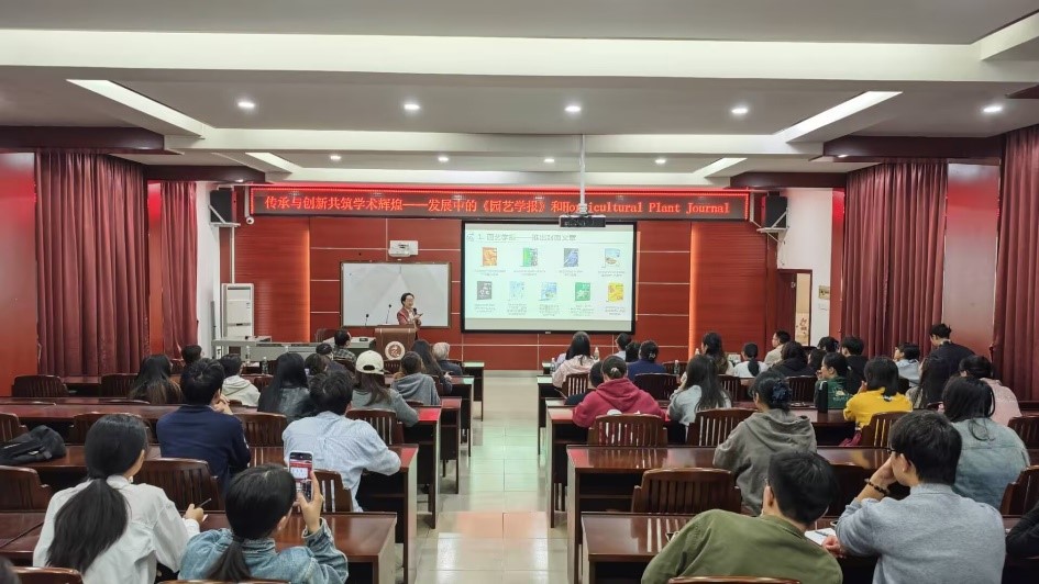 2025年11月24日,《园艺学报》和Horticultural Plant Journal编辑部责任编辑刘高洁、邹昌玉一行2人到访我院,与师生开展学术交流。活动由太阳集团122cc副经理邹承武主持,太阳集团122cc及亚热带农业生物资源保护与利用国家重点实验室近百名师生参与。
