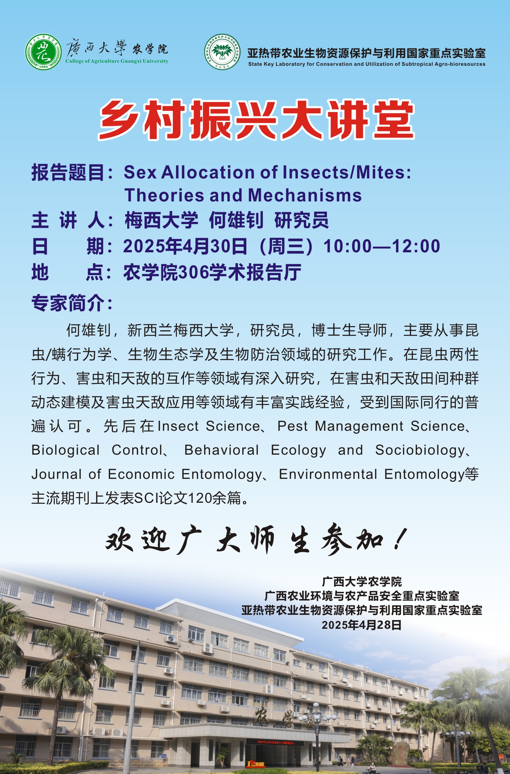乡村振兴大讲堂-Sex Allocation of Insects/Mites:Theories and Mechanisms