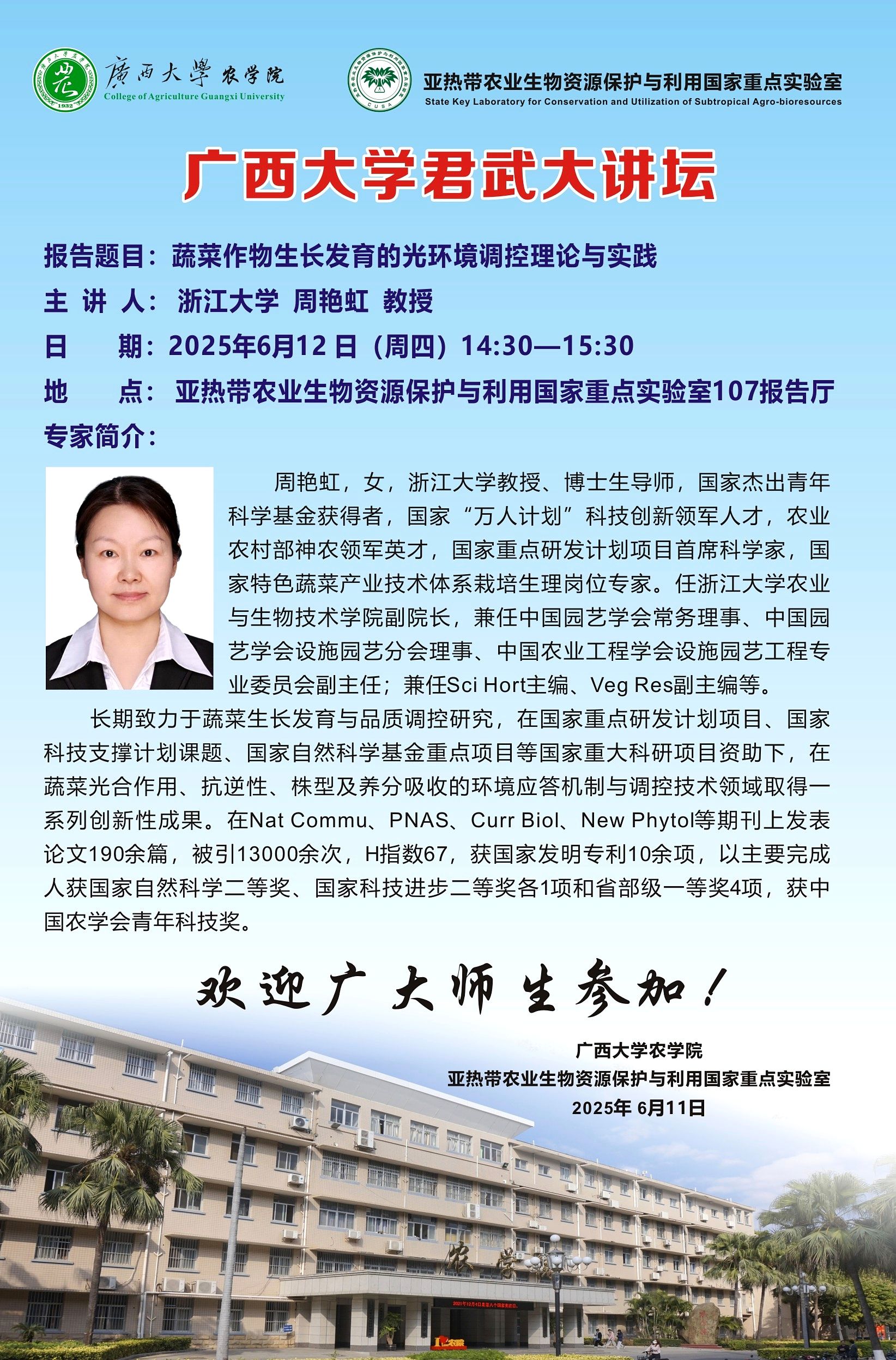 太阳集团122cc君武大讲坛-蔬菜作物生长发育的光环境调控理论与实践主讲人:浙江大学周艳虹教授