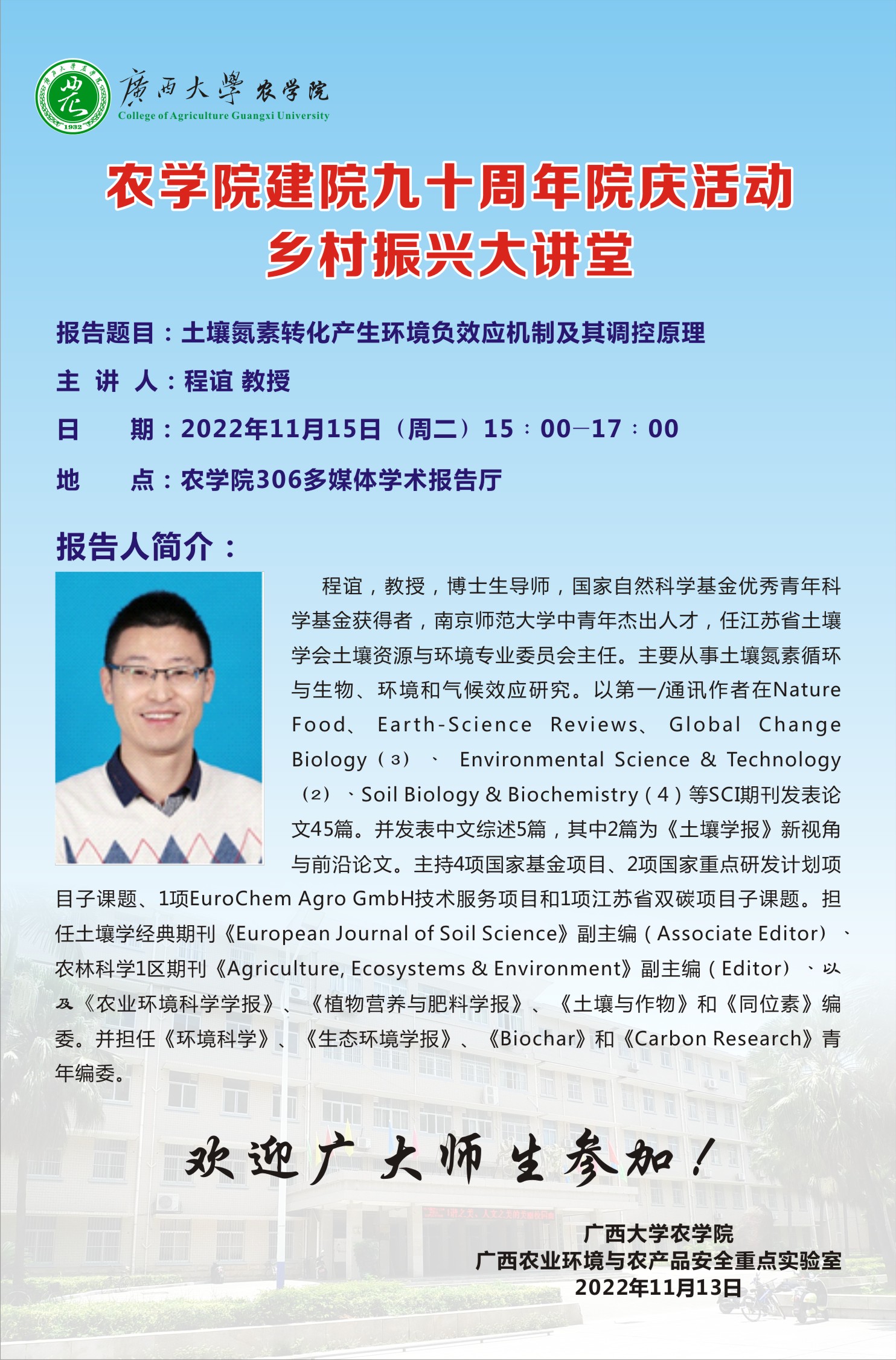 下一篇:太阳集团122cc建院九十周年院庆学术活动-岩溶区土壤氮转化过程特点及其意义:以农业和自然生态系统为例植物免疫调控相关基因鉴定及功能解析--朱同彬